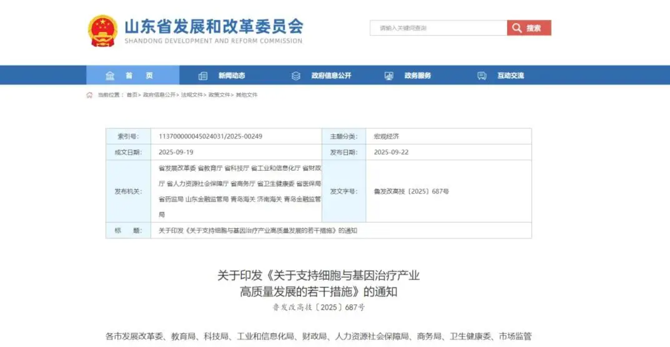 海南博鳌、广州南沙、秦皇岛北戴河、湖南长沙自贸区等地已经先后推出细胞与基因产业重磅政策。近日,山东省发改委、卫健委、医保局、药监局、教育厅、科技厅、工信厅、财政厅等13个单位联合发布《关于支持细胞与基因治疗产业高质量发展的若干措施》的通知。